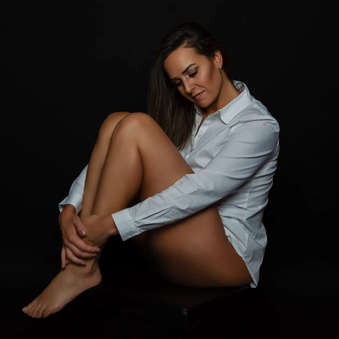 Die Fotos sind in meinem Fotostudio in der Innenstadt von Soest entstanden. Wir haben Studioblitze (Profoto B1) und das Hintergrundsystem verwendet. Ansonsten haben wir noch noch einen Stuhl und eine Truhe genutzt.