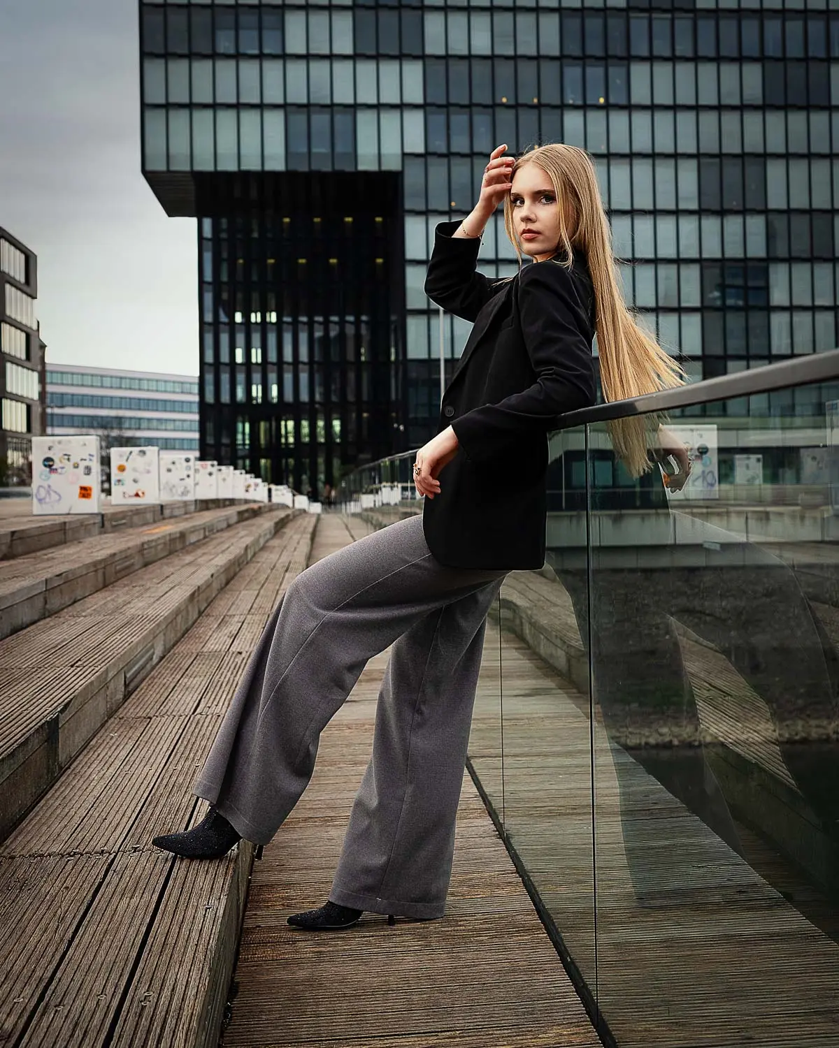 Der Medienhafen in Düsseldorf bietet mit seiner modernen Architektur, den klaren Linien und den vielseitigen Strukturen eine ideale Kulisse für urbane Portraitfotografie. Gemeinsam mit Anastasiia haben wir diese besondere Umgebung genutzt, um verschiedene Looks und Bildstimmungen umzusetzen. Zwischen Glasfassaden, Metallgeländern und offenen Plätzen entstehen abwechslungsreiche Hintergründe, die sich je nach Perspektive und Lichtstimmung ganz unterschiedlich wirken lassen – perfekt für ein spontanes und vielseitiges TFP-Fotoshooting.